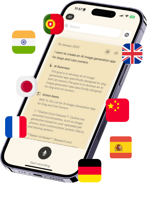 Yes. We use the latest whisper model from openai and we included for free with the app. Which means you'll have access immediately to +95 languages and everything is stored in your phone.