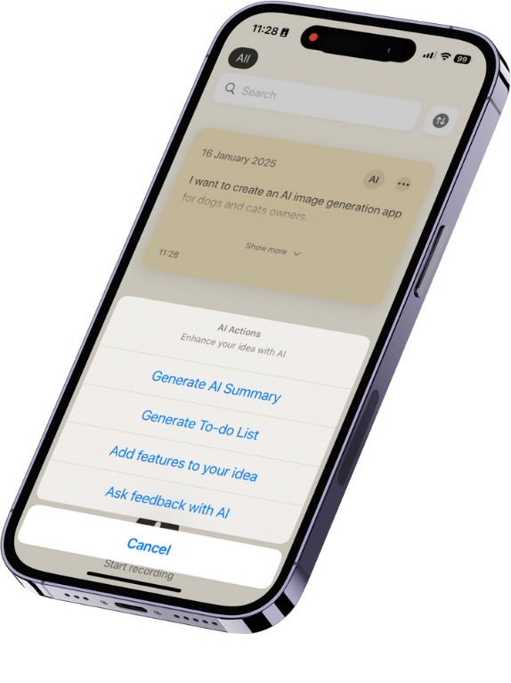 "Wherever I am, if something comes to mind, I can just record it and save it. Later on, I use the AI actions to enhance my notes."